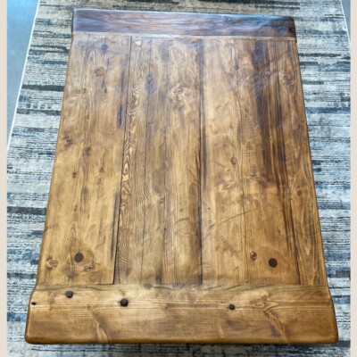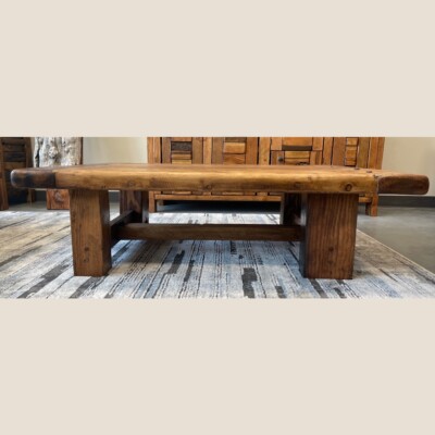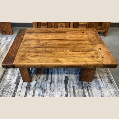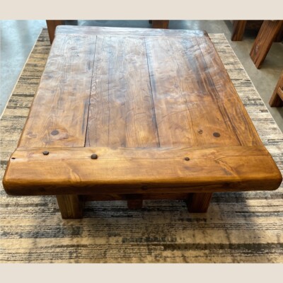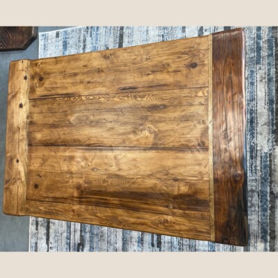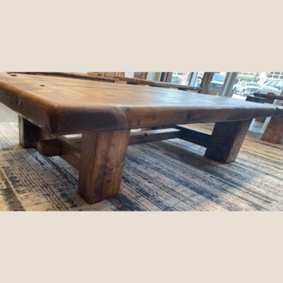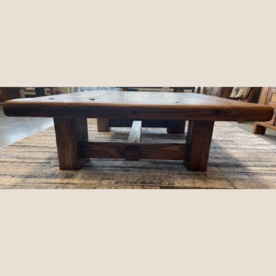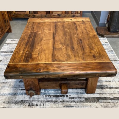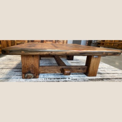 A very nice quality coffee table for any home. Features some metal pieces on the top and on the leg. Mainly crafted from Bridge wood. (Douglas Fir)