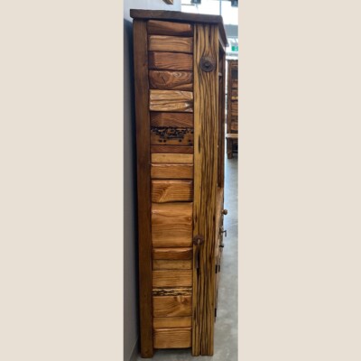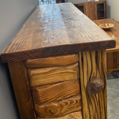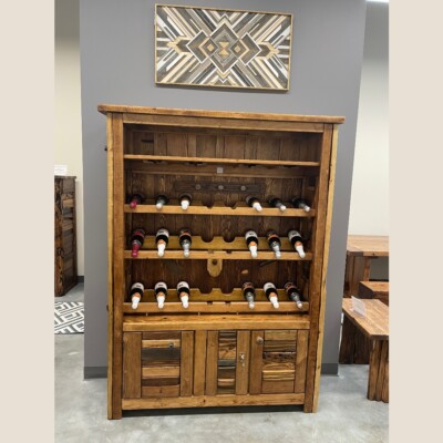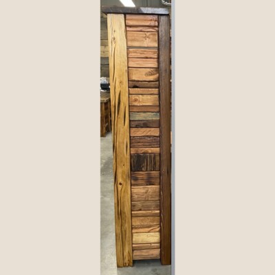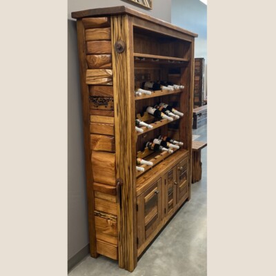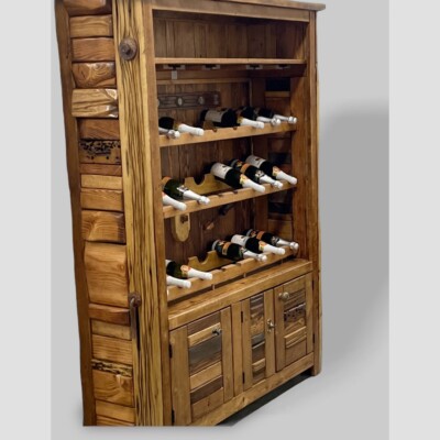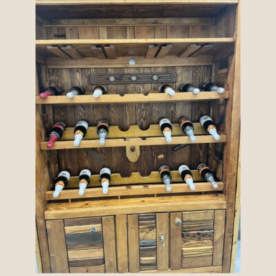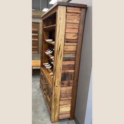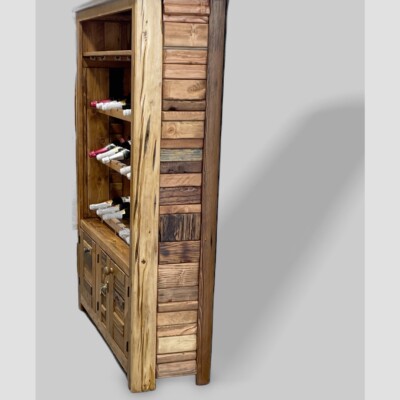 This incomparable wine cabinet is a Canadian-crafted masterpiece made from solid wood. It was created using Bridge wood and Begwood™. The artist also added some antique pieces into this modern art expression of a wine cabinet. This is a beautiful feature piece for any home or restaurant. Measurements are H72″, W16″, L52″. Created by Les Sloan.