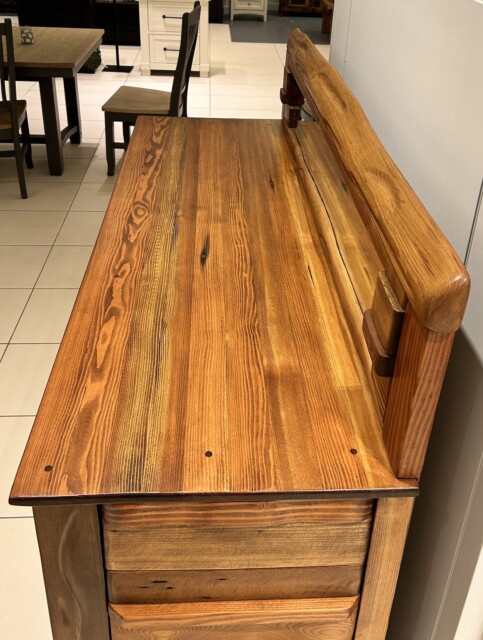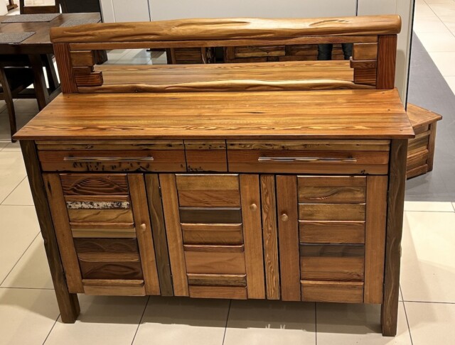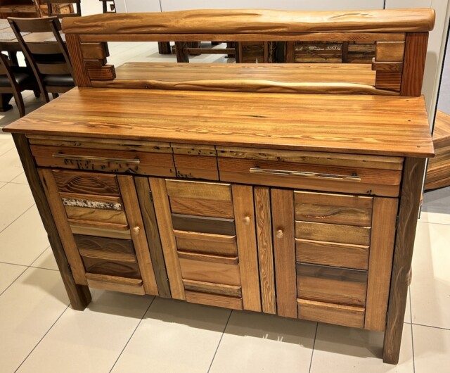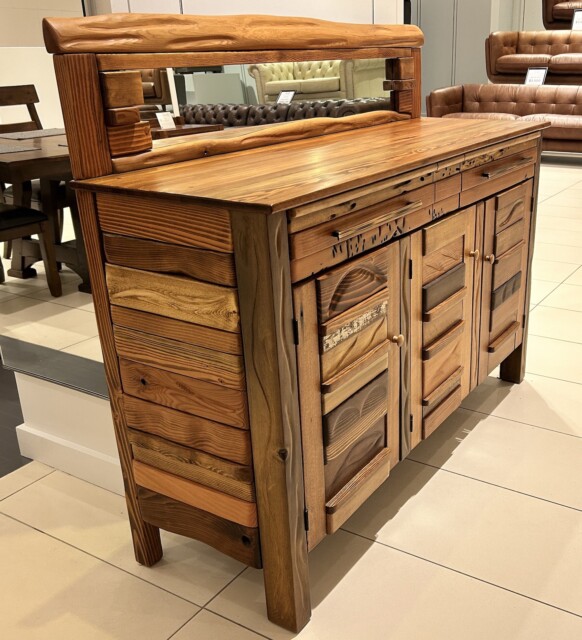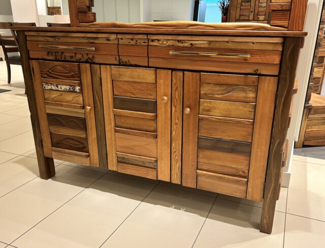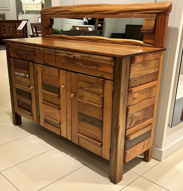 This beautiful Canadian-crafted piece uses both bridge wood and BegwoodTM, our trade-marked specialty wood. The sideboard has two soft-closing drawers as well as a beautifully accentuated mirror. An amazing addition to any home. Measurements: H50″, W20″, L60″