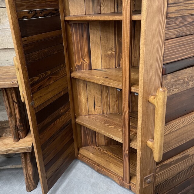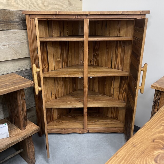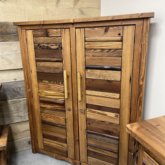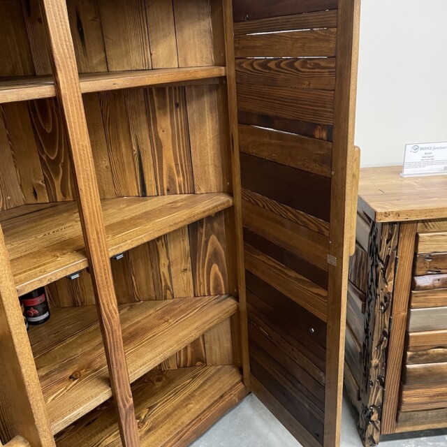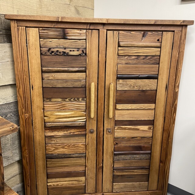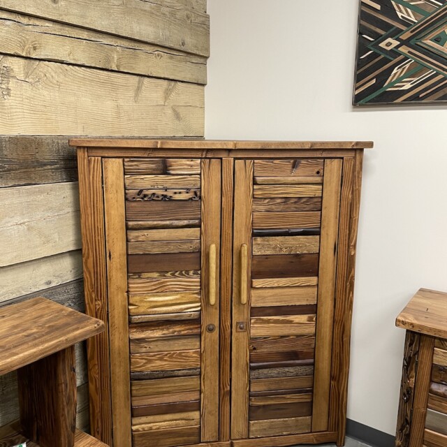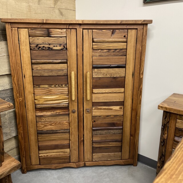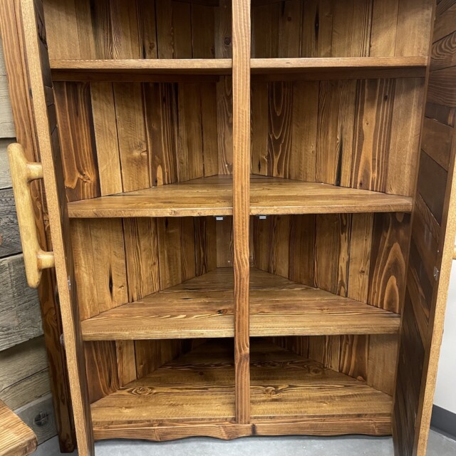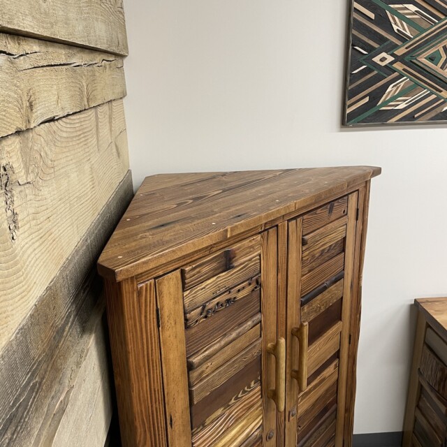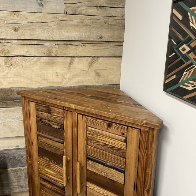 This beautiful Canadian-crafted piece uses both bridge wood and begwoodTM, our trade-marked specialty wood. It features two large doors and the inside completely done in wood. This is a beautiful place for storage for any corner areas of the home that wants beautifying. Measurements: H61″, W28″, L52″